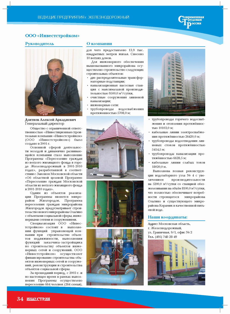 Специализация ООО «Инвестстройком» состоит в выполнении функций управляющей компании при строительстве объектов недвижимости, выполнении функций заказчиказастройщика по строительству объектов инженерных сетей и сооружений. ООО «Инвестстройком» осуществляет финансирование строительства объектов инженерных сетей и сооружений, реконструкции и строительства объектов социальной сферы.