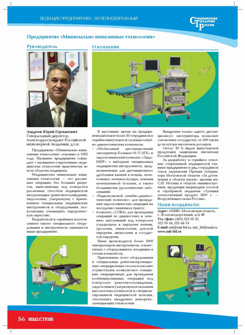 Предприятие «Минимально инвазивные технологии» основано в 1992 году. Название предприятия совпадает с названием современных медицинских технологий практически во всех областях медицины.