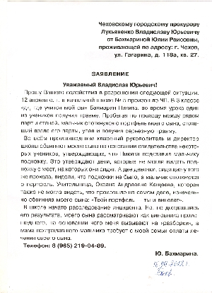 ЗАЯВЛЕНИЕ Лукьяненко Владиславу Юрьевичу ОТ БАХМАРИНОЙ ЮЛИИ РАИСОВНЫ.