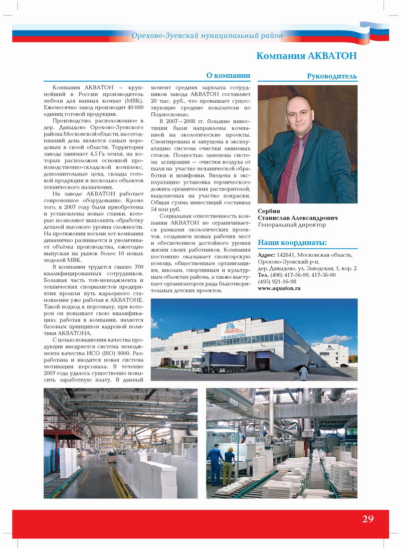 Компания АКВАТОН – крупнейший в России производитель мебели для ванных комнат (МВК). Ежемесячно завод производит 40 000 единиц готовой продукции.