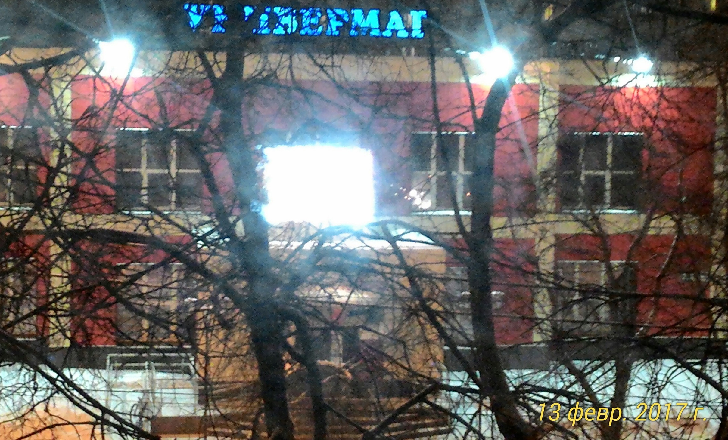 Добрый вечер Уважаемая инспекция! Просим Вас разобраться с нашей проблемой. На универмаг по ул. Советской, дом 20, висит огромный рекламный телевизор, свет его изображения бьет в окна стоящих, через дорогу домов. Заснуть просто невозможно, люди не высыпаются. Просим Вас принять должные меры.