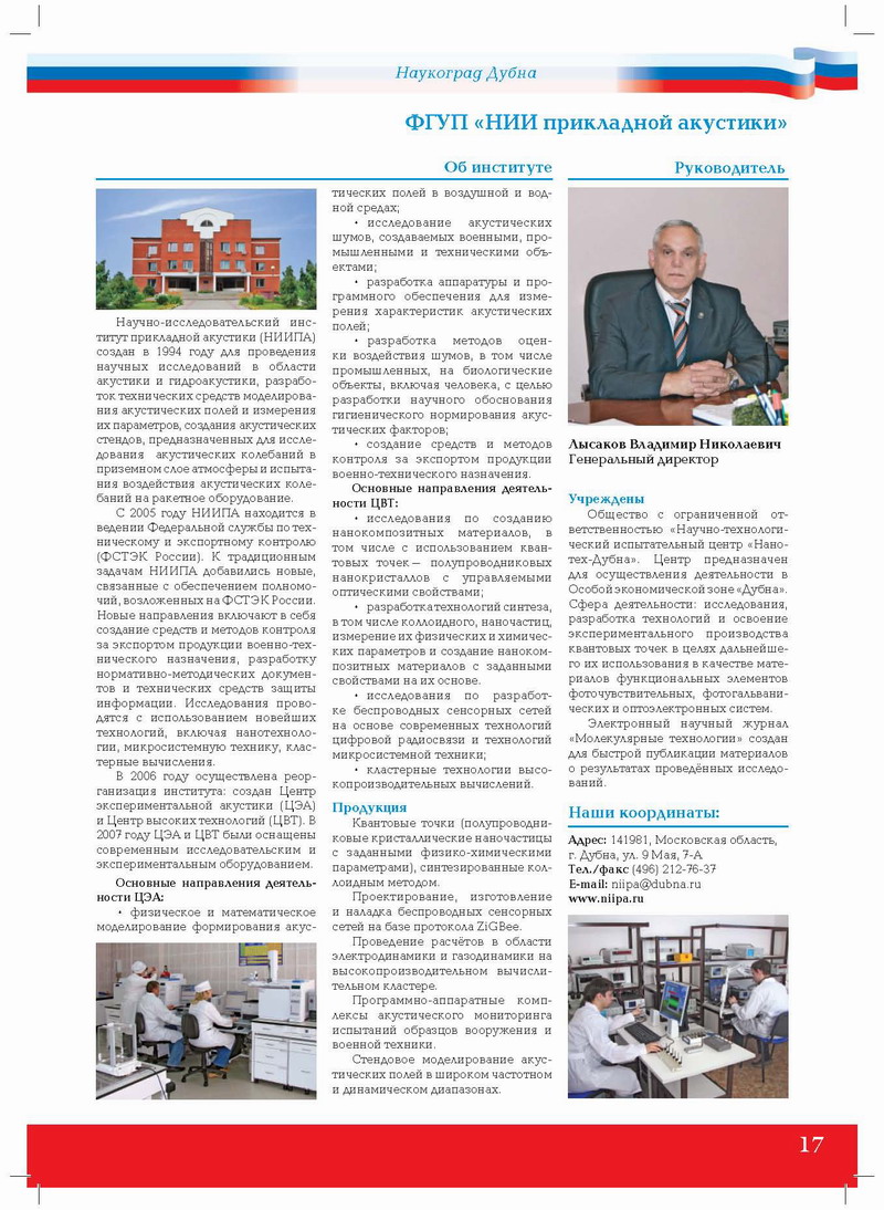 Научно-исследовательский институт прикладной акустики (НИИПА) создан в 1994 году для проведения научных исследований в области акустики и гидроакустики, разработок технических средств моделирования акустических полей и измерения их параметров, создания акустических стендов, предназначенных для исследования акустических колебаний в приземном слое атмосферы и испытания воздействия акустических колебаний на ракетное оборудование.
