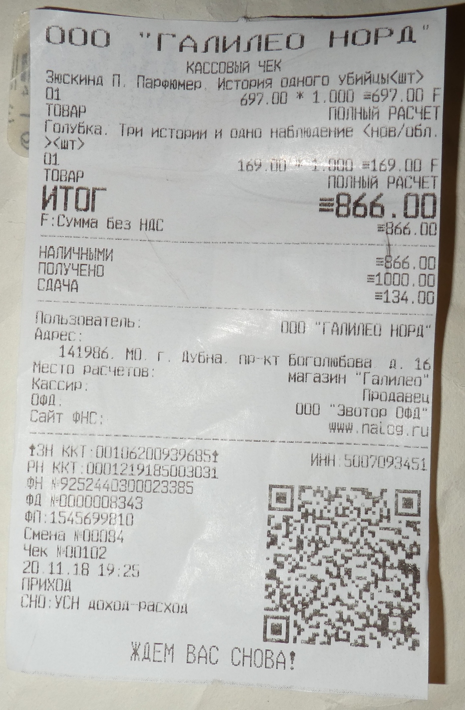 Цена на книге 399 руб, выдали чек на 697 рублей.