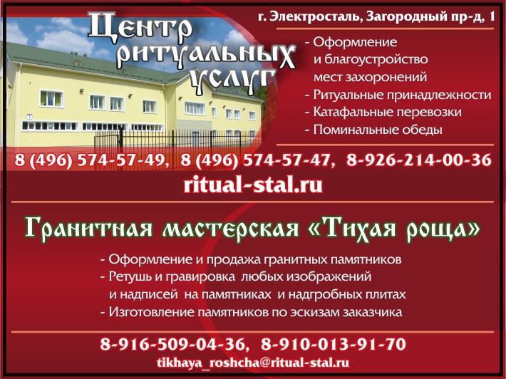 Официальный сайт ritual-stal.ruТелефон+7 496 574-57-...+7 496 574-57-...+7 910 013-91-...+7 926 214-00-...+7 496 576-67-...