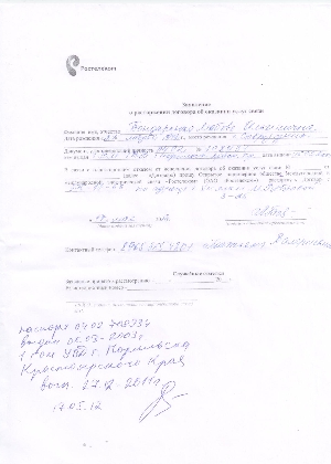 Заявление о расторжение договора на оказание услуг связи. Мой адрес: Химки, Марии Рубцовой, д. 3-25, тел.: дом. (495) 575 17 66. Хочу расторгнуть договор, уже была у сотрудника с личным визитом, но тогда не поступила оплата за телефон, а у меня с собой не было подтверждения платежа (чека). Достаточно ли того, что я отправляю вам сейчас заявление расторжении принятом уже вашим сотрудником, о чем имеется служебная отметка от 17.05.2012 года или все-таки нужно подъехать лично.