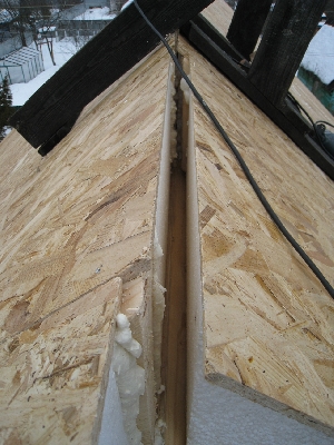 При установке панелей крыши, а именно коньковых, зазор составлял от 1 см до 5.5 см., благо бригада, которая производила сборку оказалась адекватная и все эти огрехи производства заделали остатками пенополистирола и монтажной пены. Повторюсь, что бригада строителей собирала подобный дом в первый раз, но к ним претензий не имею.