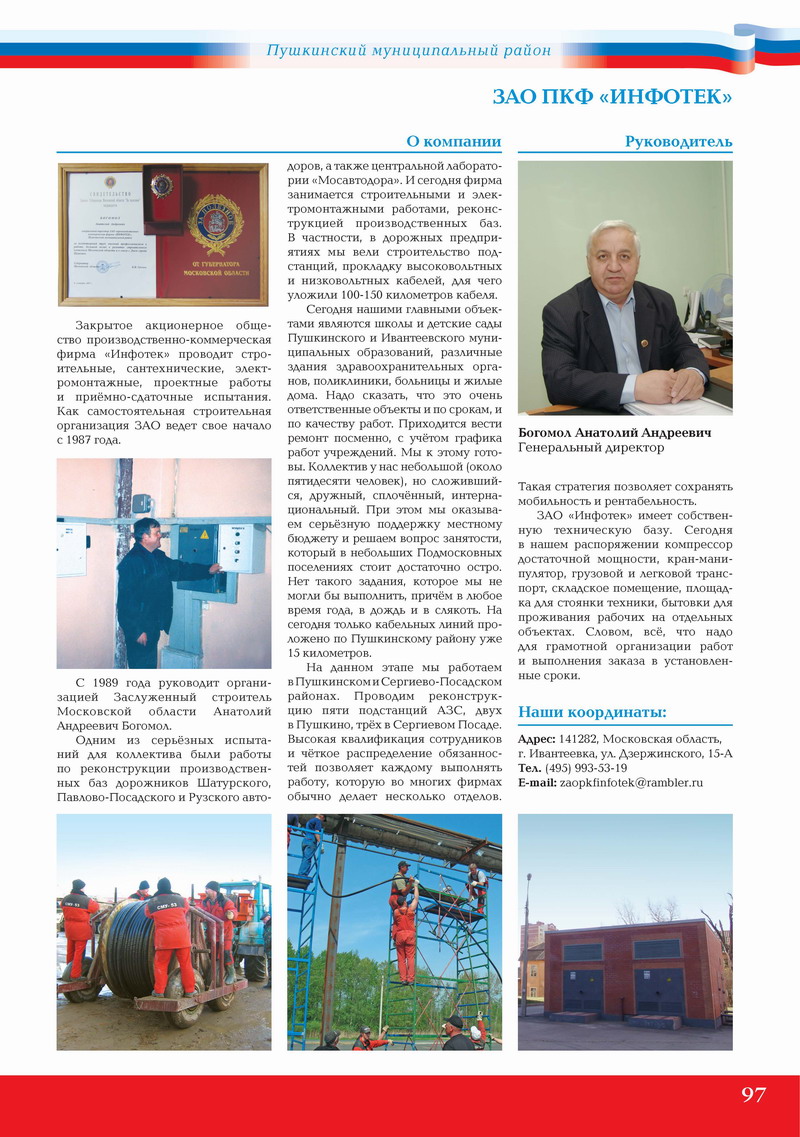 С 1989 года руководит организацией Заслуженный строитель Московской области Анатолий Андреевич Богомол.