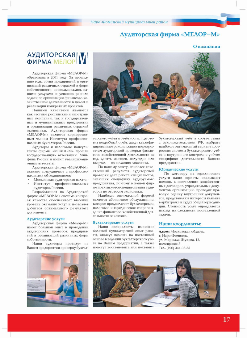 Аудиторская фирма «МЕЛОР-М» активно сотрудничает с профессиональными объединениями: Московская аудиторская палата; Институт профессиональных аудиторов России.
