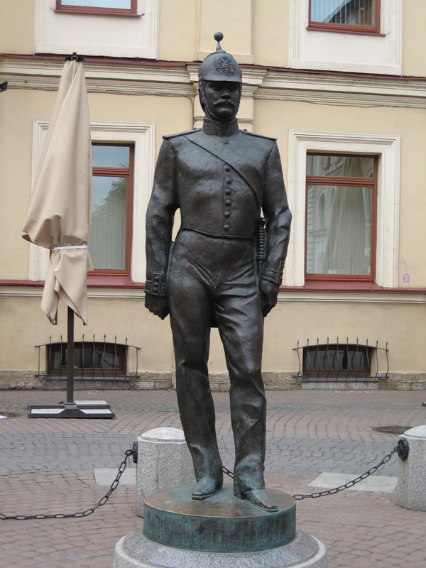 Установление памятника Городовому в Санкт-Петербурге состоялось в июне 1998 года на Малой Конюшенной улице. Работу над памятником Городовому в Санкт-Петербурге проводил скульптор А.С. Чаркин, и архитектор В.В. Попов. Этот памятник Городовому в Санкт-Петербурге оказался подарком городу от ГУВД, а в