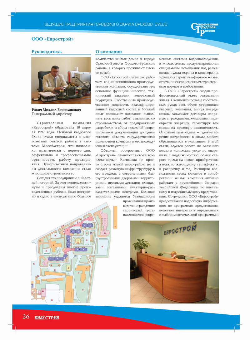 Сегодня это предприятие с 10-летней историей. За этот период достигнуты и преодолены многие производственные рубежи, было построено и сдано в эксплуатацию большое количество жилых домов в городе ОреховоЗуево и ОреховоЗуевском районе, в которых проживают тысячи семей.