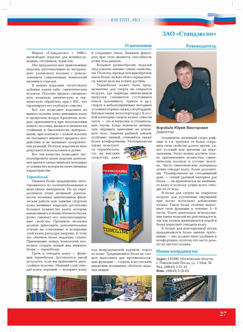 Фирма «Стандэкспо» с 1988 г. производит изделия для военнослужащих, охотников, туристов.