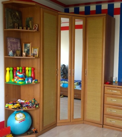 Гордость нашей детской - комплект мебели от Лазурита. Полки стеллажа никогда не пустуют, то игрушки, то книжки. Шкаф большой, особенно с зеркалами, там еще по бокам место есть. Вещи по квартире не разбросаны, все по своим местам. Комплекту год, брали в рассрочку, уже давно расплатились.