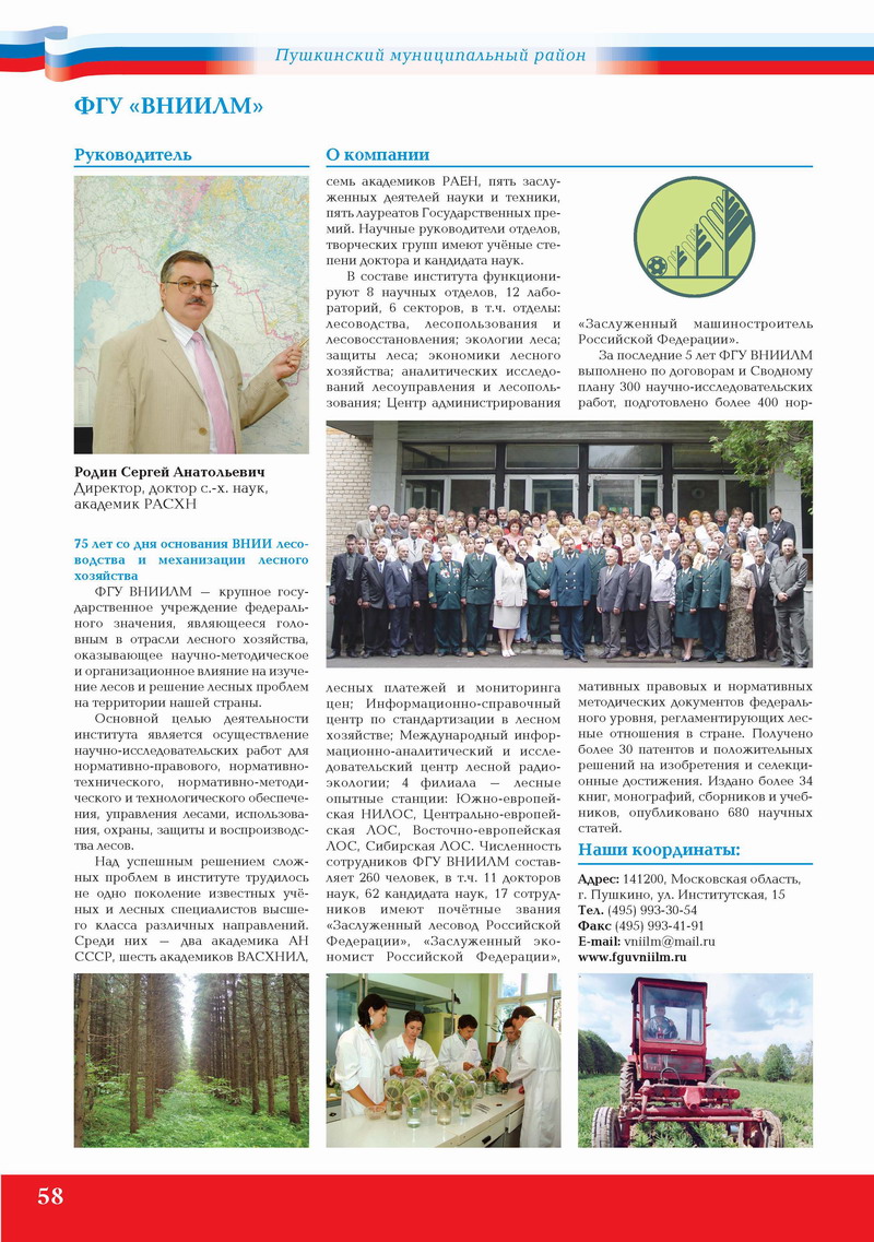 ФГУ ВНИИЛМ – крупное государственное учреждение федерального значения, являющееся головным в отрасли лесного хозяйства, оказывающее научно-методическое и организационное влияние на изучение лесов и решение лесных проблем на территории нашей страны.