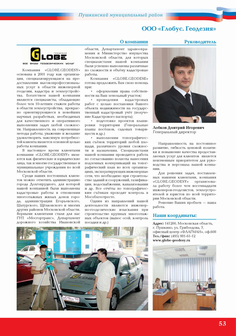 В настоящее время клиентами компании «GLOBE.GEODESY» являются как физические и юридические лица, так и многие государственные и муниципальные учреждения по всей Московской области.