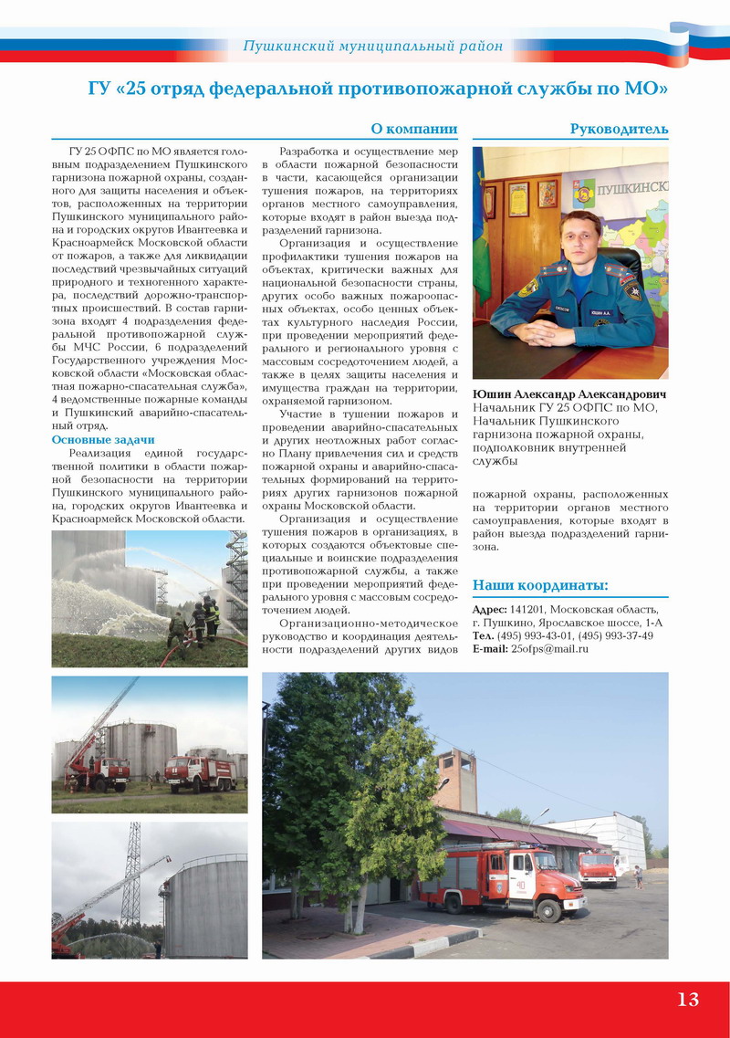 Реализация единой государственной политики в области пожарной безопасности на территории Пушкинского муниципального района, городских округов Ивантеевка и Красноармейск Московской области.