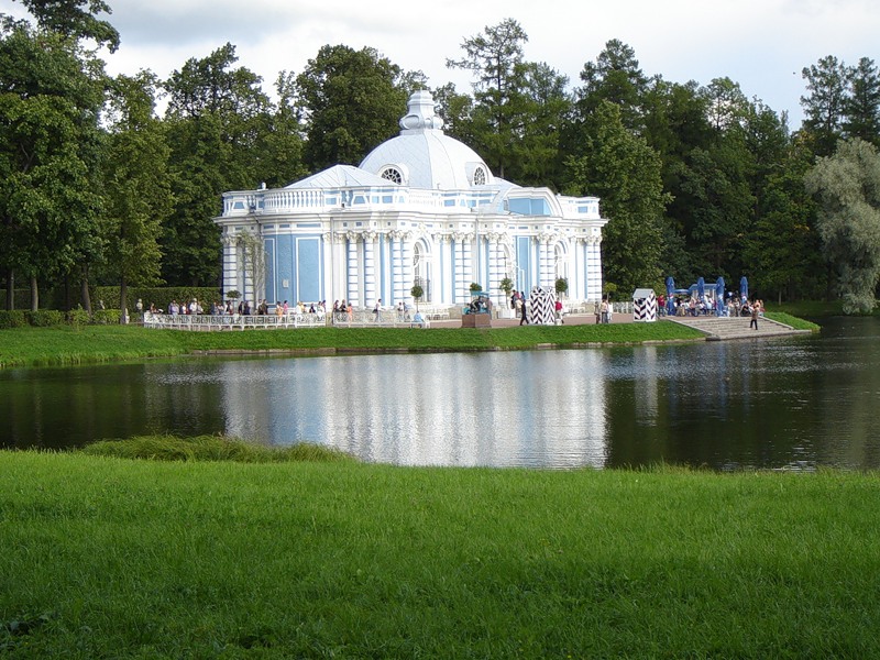 Павильон Грот в Пушкине расположен на берегу Большого пруда регулярной части Екатерининского парка.