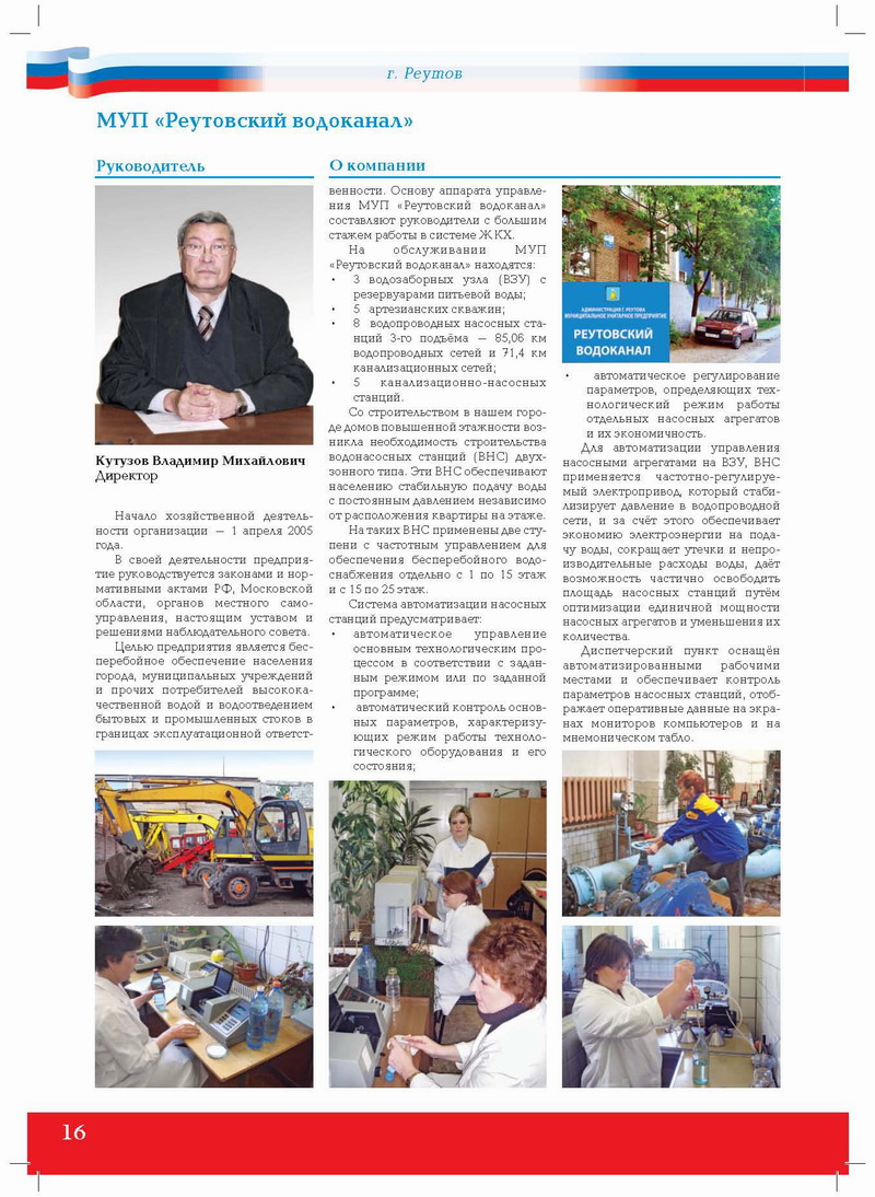 На обслуживании МУП «Реутовский водоканал» находятся: 3 водозаборных узла (ВЗУ) с резервуарами питьевой воды; 5 артезианских скважин; 8 водопроводных насосных станций 3-го подъёма – 85,06 км водопроводных сетей и 71,4 км канализационных сетей; 5 канализационнонасосных станций.