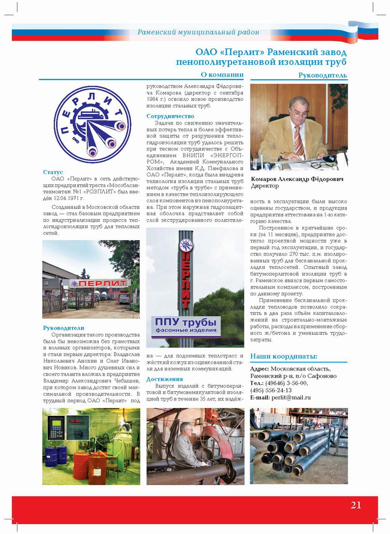 ОАО «Перлит» в сеть действующих предприятий треста «Мособлсантехмонтаж №1 «РОЗПЛИТ» был введён 12.04.1971 г.