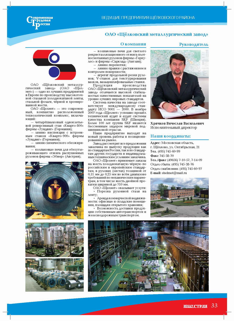 ОАО «Щёлковский металлургический завод» (ОАО «Щелмет») — одно из лучших предприятий в Европе по производству высокоточной стальной холоднокатаной ленты, стальной фольги, чёрной и хромированной жести.