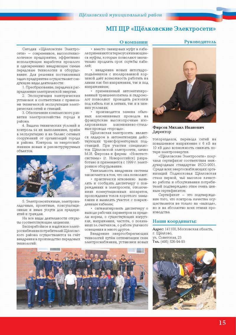 «Щёлковские Электросети» получили сертификат соответствия международным стандартам ИСО-9001. Среди всех энергоснабжающих организаций Подмосковья Щёлковская стала первой, чьё высокое качество работы и обслуживания потребителей подтверждено этим очень ценным сертификатом.