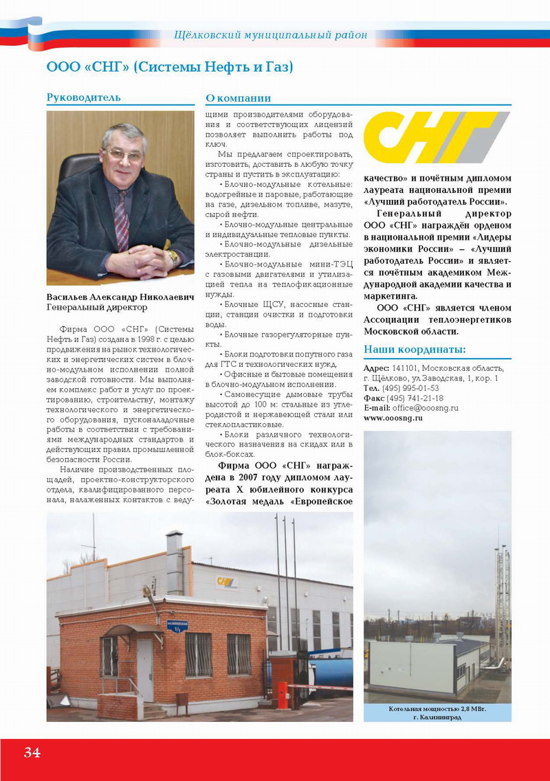 ООО «СНГ» является членом Ассоциации теплоэнергетиков Московской области.