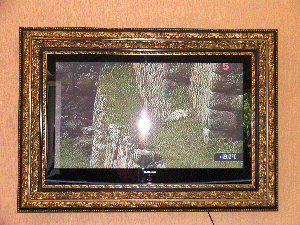 Решил телевизор одеть в раму. Были сомнения относительно целесообразности этой авантюры, да еще когда стоимость узнал!! Хотя справедливости ради, хочу сказать, что сам захотел один из самых шикарных вариантов предложенных дизайнером. Зато получился полный эксклюзив. Зацените!!