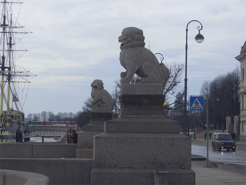 В далеком 1907 году на Петровской набережной состоялась установка гранитных скульптур с интересным названием памятник Щи-Цза в Санкт-Петербурге, что означает – мифологические львы – лягушки. Статуи заняли свои почетные места после того, как набережная была отделана гранитной плиткой, а также